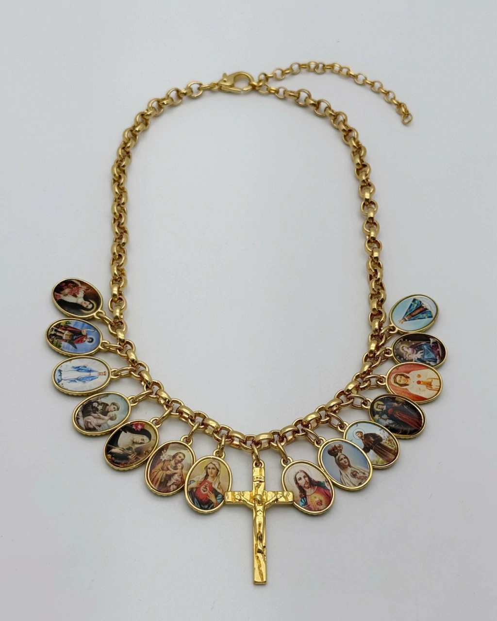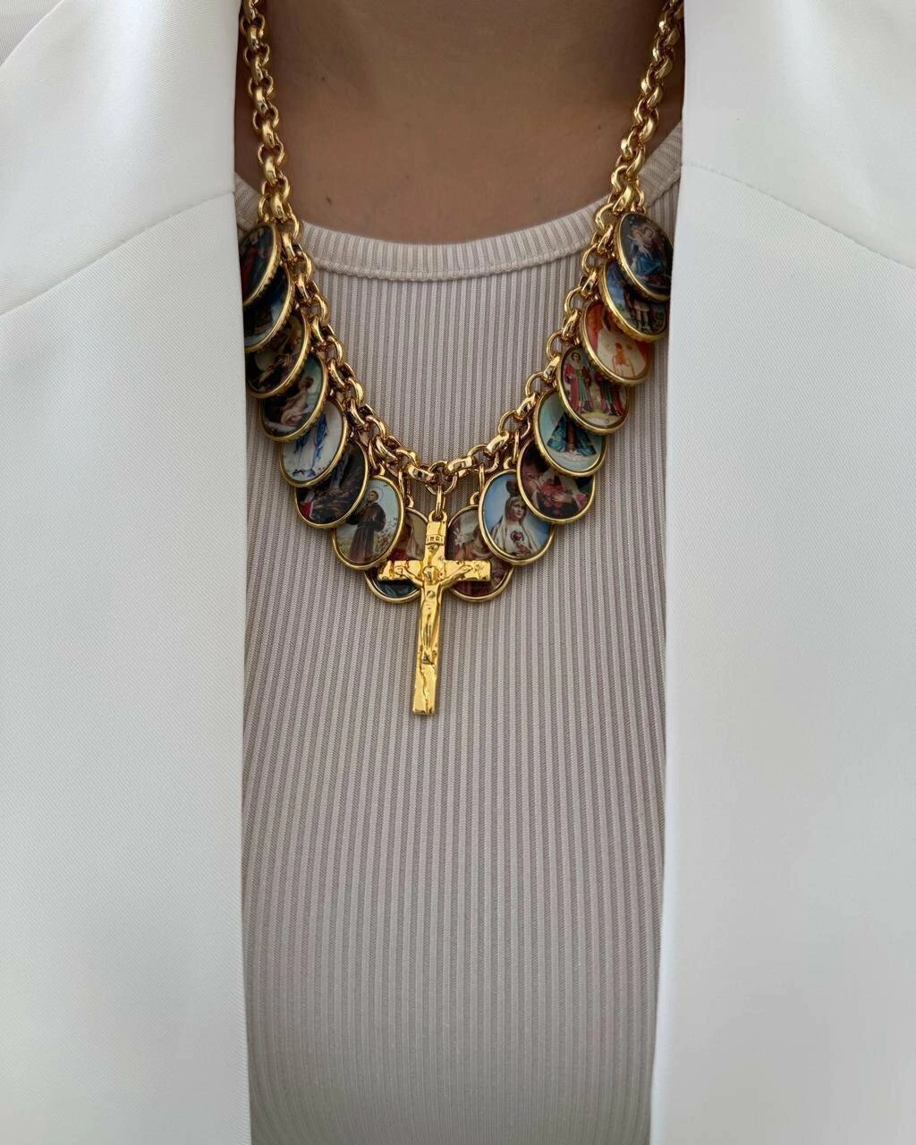 O colar foi criado para mulheres que acreditam que sua devoção pode ser demonstrada além de seu interior. Trazendo elementos que remetem a sua fé e ainda auxiliam internamente em sua autoestima, valorizando seu estilo e sua feminilidade. Adquira agora este lindo colar e tenha em sua coleção um acessório diferenciado e especialmente criado para você.