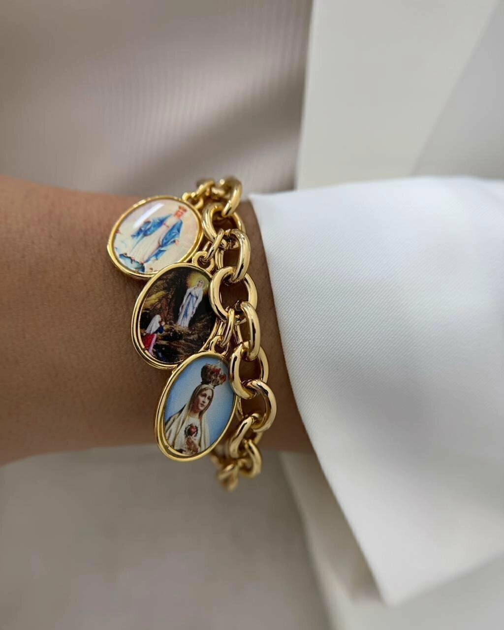 A pulseira foi criada para mulheres que acreditam que sua devoção pode ser demonstrada além de seu interior. Trazendo elementos que remetem a sua fé e ainda auxiliam internamente em sua autoestima, valorizando seu estilo e sua feminilidade. Adquira agora esta linda pulseira e tenha em sua coleção um acessório diferenciado e especialmente criado para você.