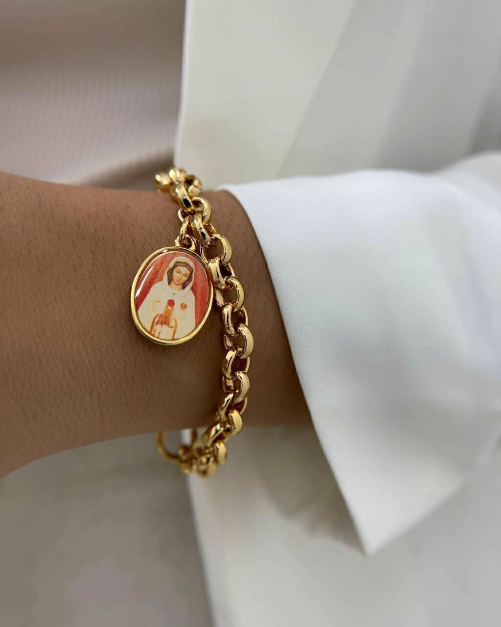 A pulseira foi criada para mulheres que acreditam que sua devoção pode ser demonstrada além de seu interior. Trazendo elementos que remetem a sua fé e ainda auxiliam internamente em sua autoestima, valorizando seu estilo e sua feminilidade. Adquira agora esta linda pulseira e tenha em sua coleção um acessório diferenciado e especialmente criado para você.