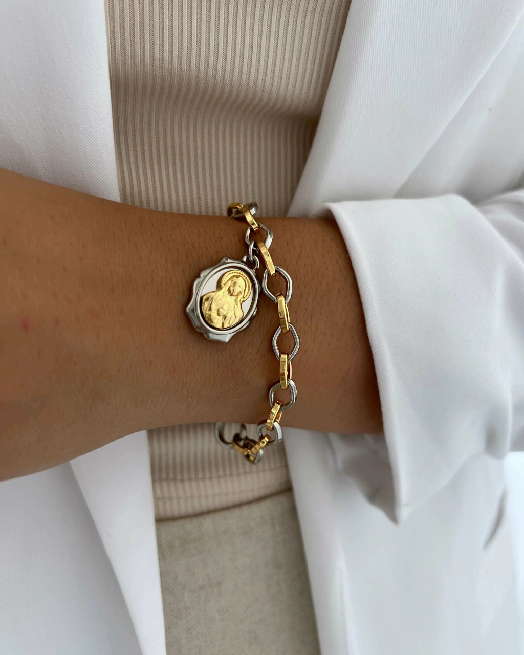 Esta pulseira é versátil e pode ser usada em diversas ocasiões. Sua corrente é moderna e atraente, enquanto o pingente traz um significado profundo, tornando-o perfeito para todas as situações.
