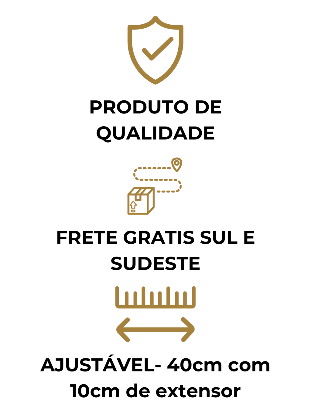 Todo em metal, recebe um banho de Ouro com Verniz Italiano Antialérgico.