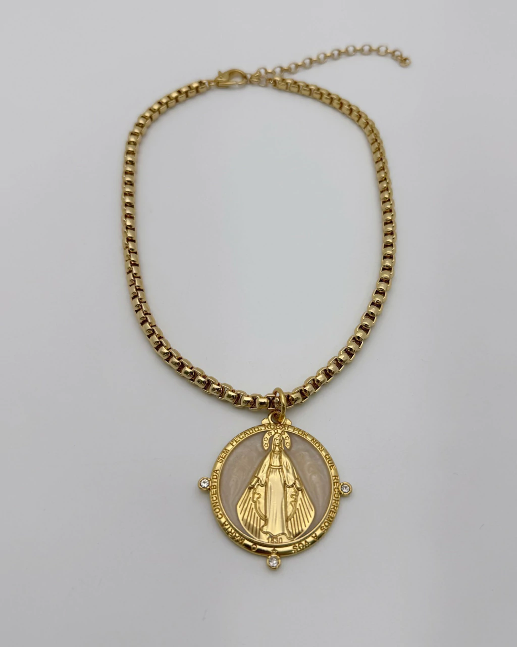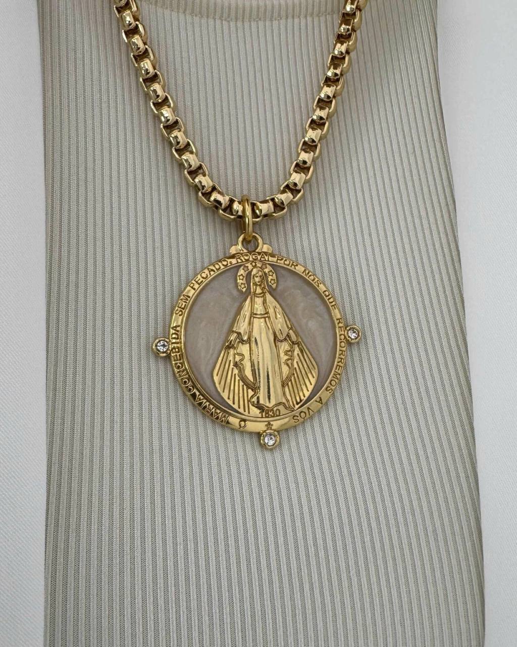 O colar foi criado para mulheres que acreditam que sua devoção pode ser demonstrada além de seu interior. Trazendo elementos que remetem a sua fé e ainda auxiliam internamente em sua autoestima, valorizando seu estilo e sua feminilidade. Adquira agora este lindo colar e tenha em sua coleção um acessório diferenciado e especialmente criado para você.