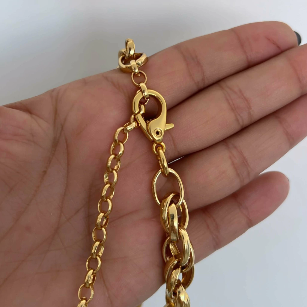 Todo em metal, recebe um banho de Ouro com Verniz Italiano Antialérgico.