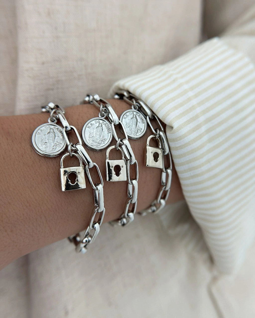 Pulseira produzida em Aço Inox, apenas o cadeado não é de aço inoxidável.