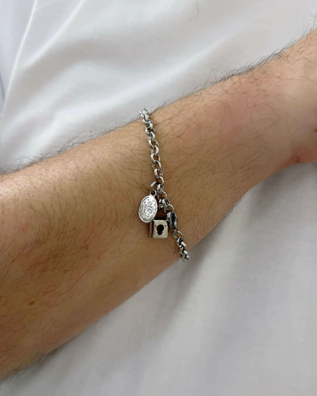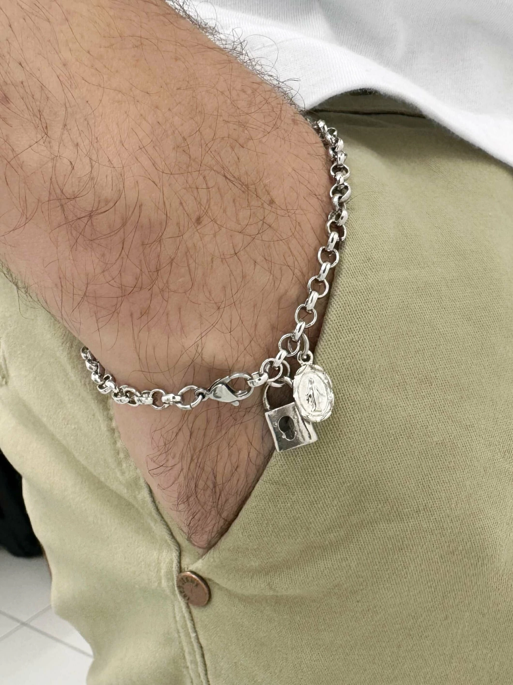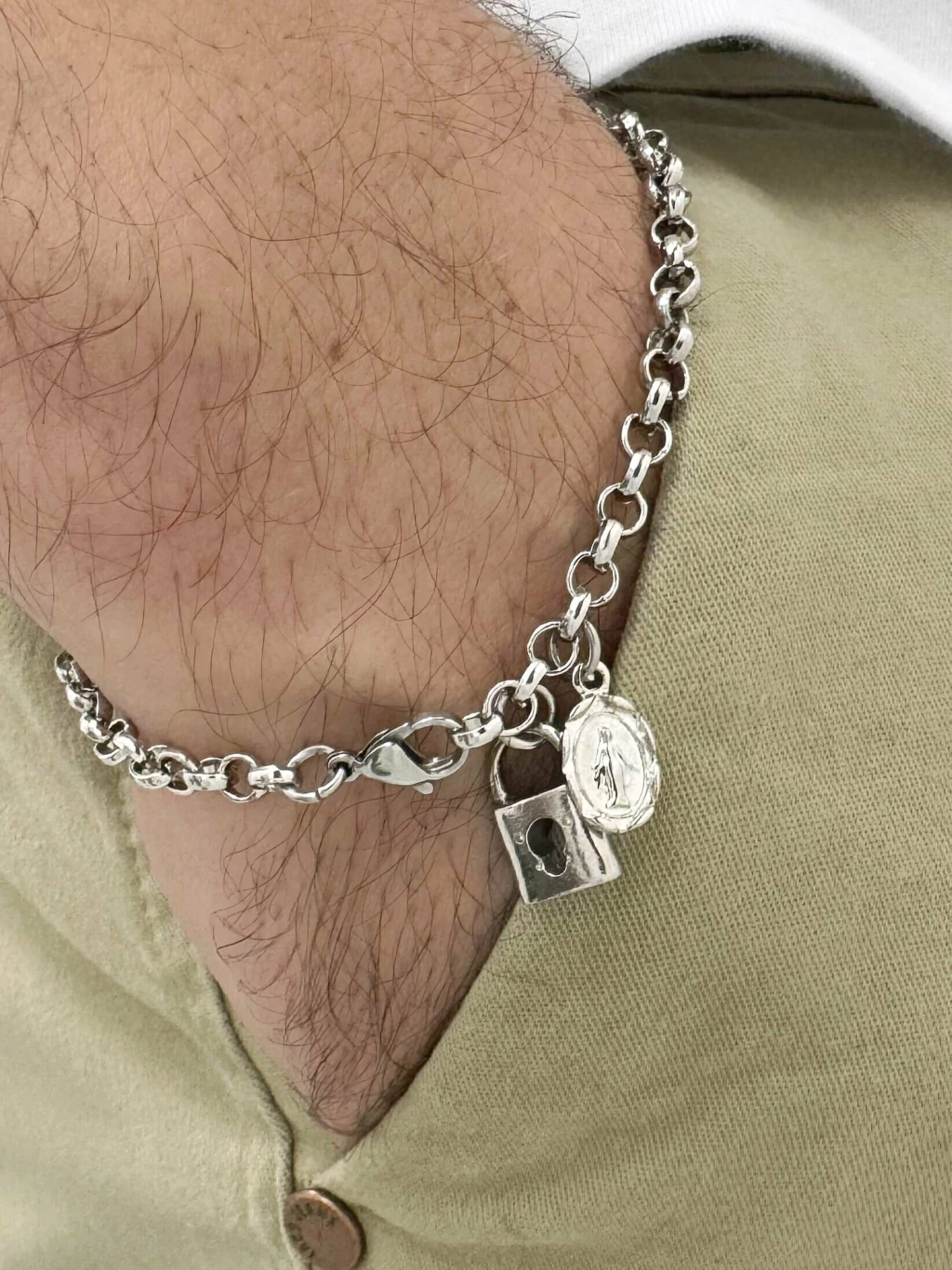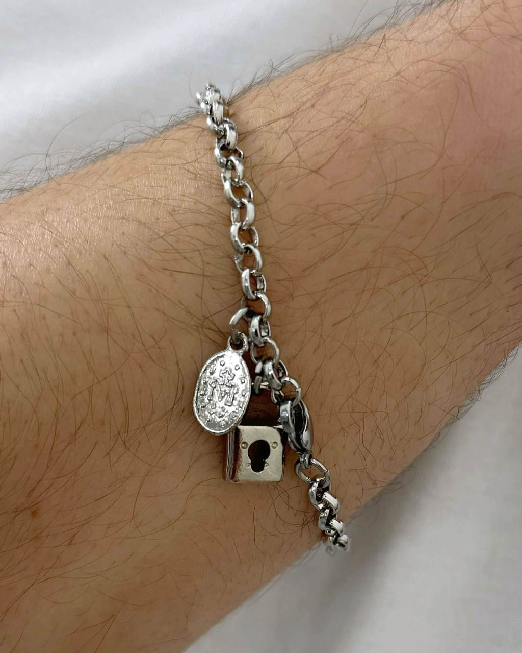 Esta pulseira de cadeia de consagração foi desenvolvida para aquele fiel devoto que busca demonstrar toda sua fé e confiança em Deus.