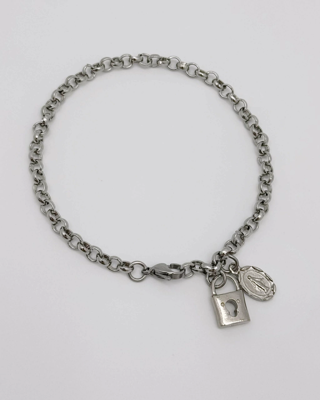 Delicada e resistente, esta cadeia de consagração em aço inox celebra a espiritualidade de da Medalha Milagrosa - Nossa Senhora das Graças. Hipoalergênica e à prova de oxidação, é ideal para uso diário, simbolizando confiança, simplicidade e entrega total ao amor de Cristo..