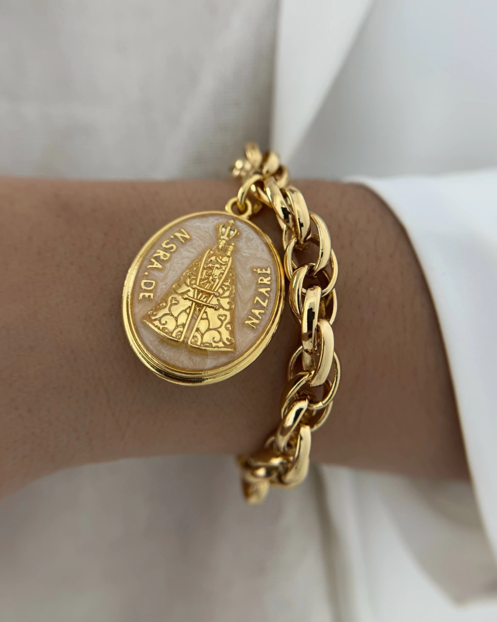 A Pulseira de Nossa Senhora de Nazaré carrega não apenas beleza e elegância, mas também a história e a devoção de milhões de fiéis. Os milagres de Nossa Senhora de Nazaré atravessam gerações: curas, libertações e graças que transformam vidas. Cada detalhe desta pulseira é um convite a recordar a fé viva da Virgem de Nazaré, padroeira da Amazônia e mãe que nunca abandona seus filhos.”