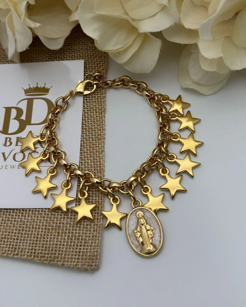 A Pulseira Estrelas da Medalha Milagrosa é um acessório de fé e proteção, que une elegância e espiritualidade.