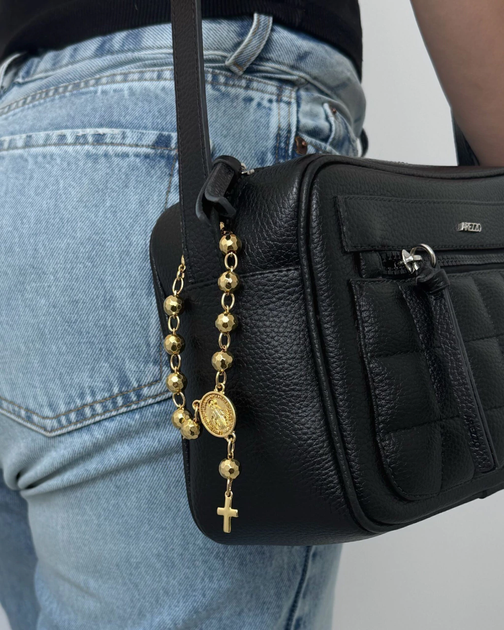 Um acessório cheio de fé e estilo, que pode ser usado de duas formas: como pulseira no pulso ou como enfeite charmoso na alça da bolsa.